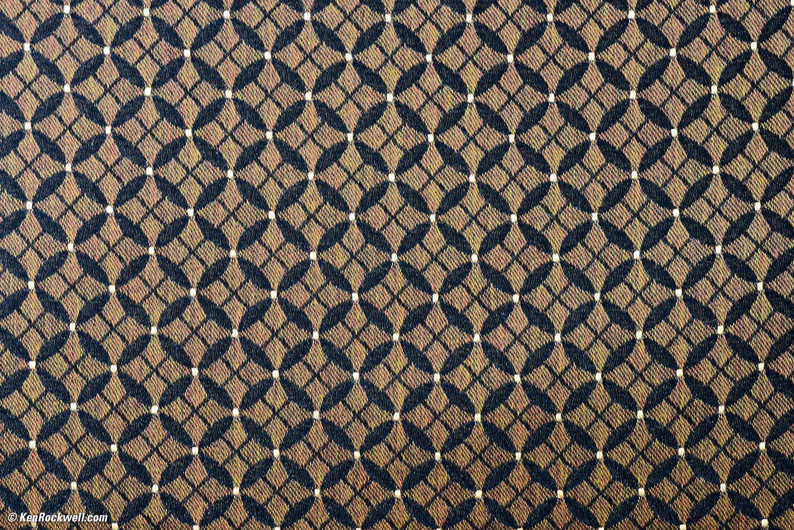 Vibration ReductionVibration Reduction (Image Stabilization), rated three stops improvement, can be superb at foolishly slow handheld speeds like 1/8 through 1/4 second. Here's a shot made at a quarter-second hand held, standing with no support: Puffy cushion shot hand-held at 1/4 second, standing. D810, ISO 100, f/16 at 1/4. bigger. The gotcha is that VR sometimes doesn't work that well at transitional speeds like from 1/60 through 1/30. It's certainly better than nothing, but if you're picky, it's not always as good as I'd like it at the speeds where it should work perfectly. When you get yours, be sure to try it out at 1/60 and be sure all your shots are sharp. It does work swell on a tripod; it figures out that I'm on a tripod and compensates accordingly. There's no need to turn it off unless you're on an exceptionally sturdy support system.